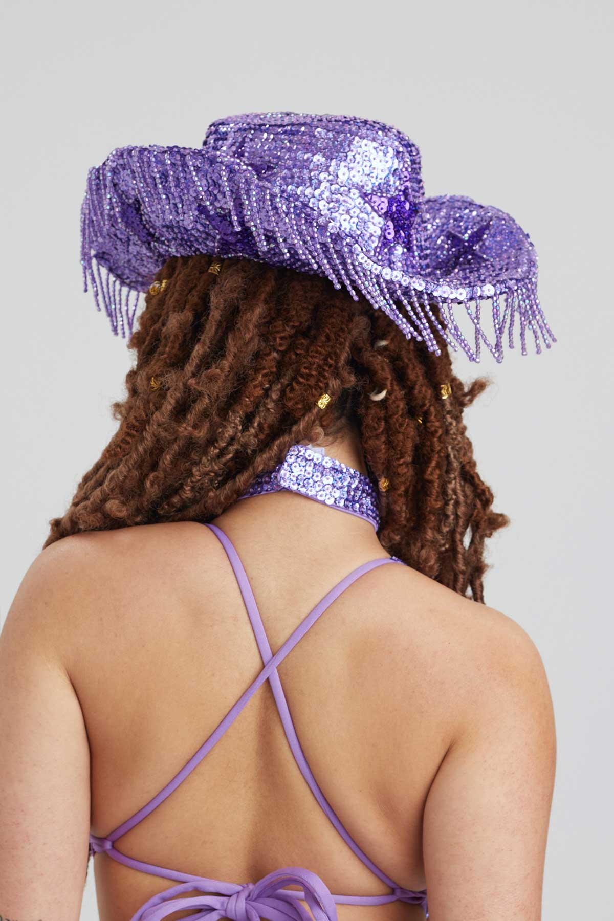 PLEASE NOTE: Due to the nature of these particular lighter purple sequins please keep hat out of the sun for long periods of time where possible. The sun will fade the sequins and affect the overall look of the garment.Â