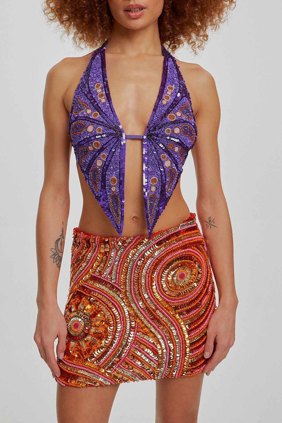 Elevate your wardrobe with the Celeste Top - a statement piece channeling the glamour and allure of Studio 54. A timeless piece. Crafted for a flawless fit with an adjustable tie-back.Â